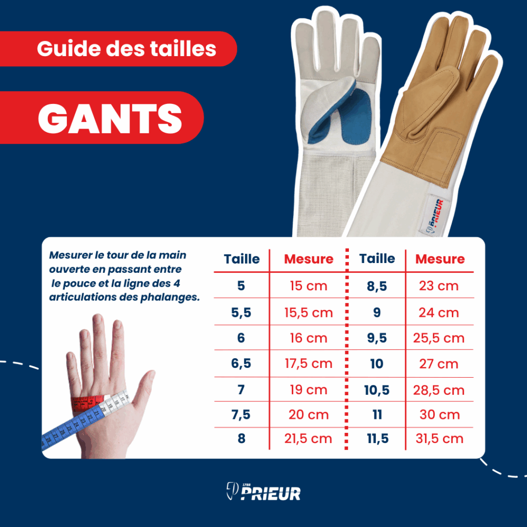 Il suffit de mesurer le tour de la main ouverte en passant entre le pouce et la ligne des quatre articulations des phalanges.
